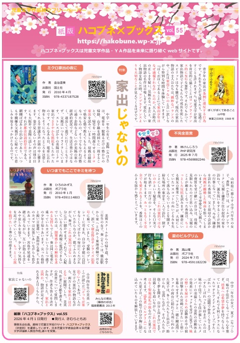 ■紹介作品 ・ぼくがぼくであること(山中恒) ・不完全宣言(林けんじろう) ・夏のピルグリム(高山環) ・ミクロ家出の夜に(金治直美) ・いつまでもここでキミを待つ(ひろのみずえ) ・みんなの家出(藤田のぼる) ※フリーペーパーバックナンバーはこちらから |